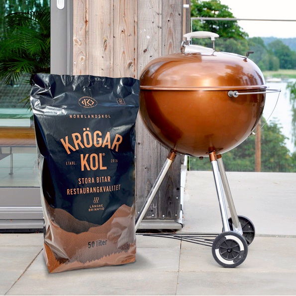 Det populära Krögarkolet säljs i 50 liters påse och i år i de nya 3,5 kg förpackningarna av både Krögarkol och Krögarbriketten.
